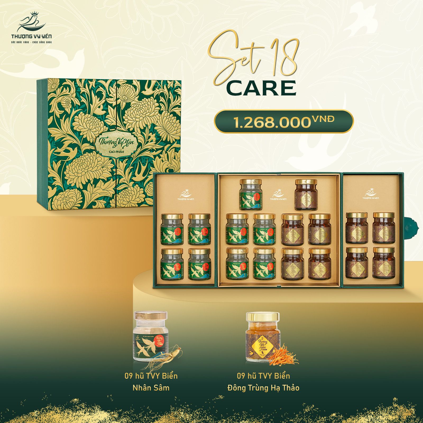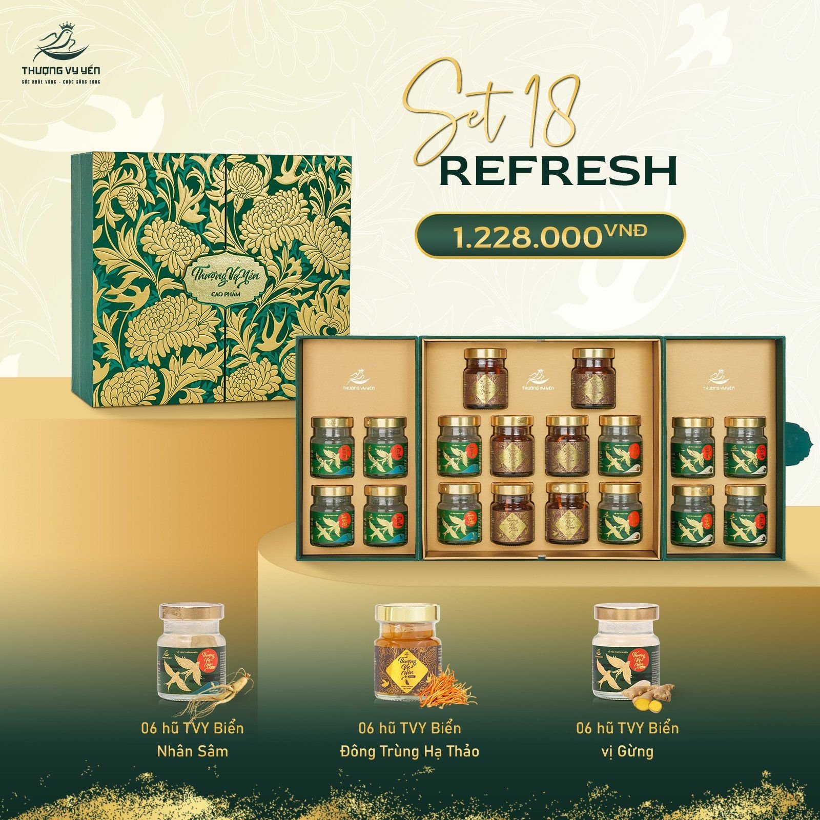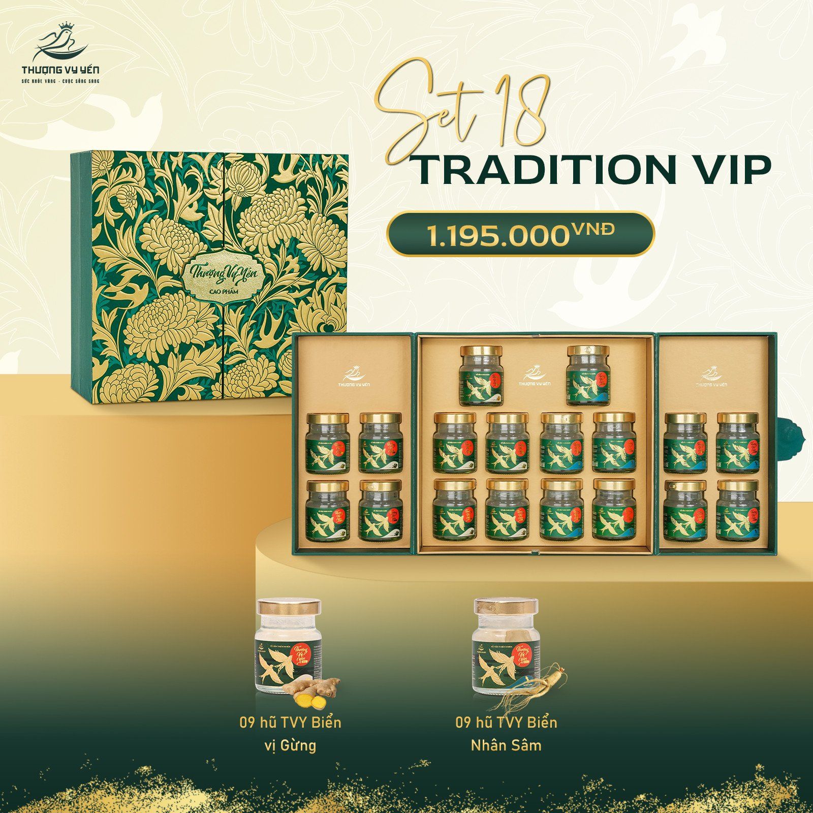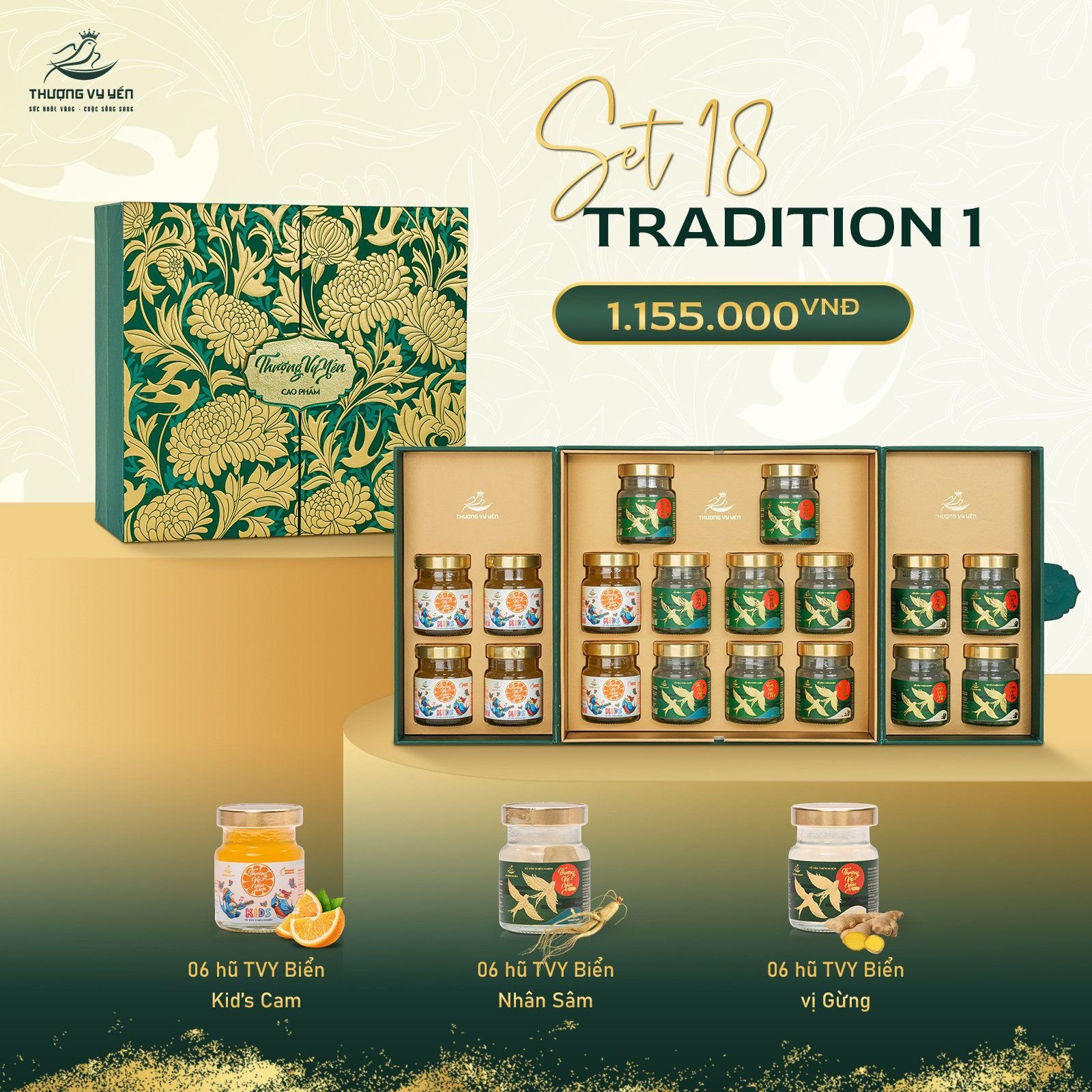 - Thượng Vy Yến biển được chế biến từ yến biển thiên nhiên 100%, có nguồn gốc từ các ở Khánh Hòa. Thượng Vy Yến biển Sở hữu 6 hương vị chiếm trọn sự hài lòng từ khách hàng: Nhân Sâm – Đông Trùng Hạ Thảo – Saffron – Đường ăn kiêng – Gừng – Kid’s Cam.